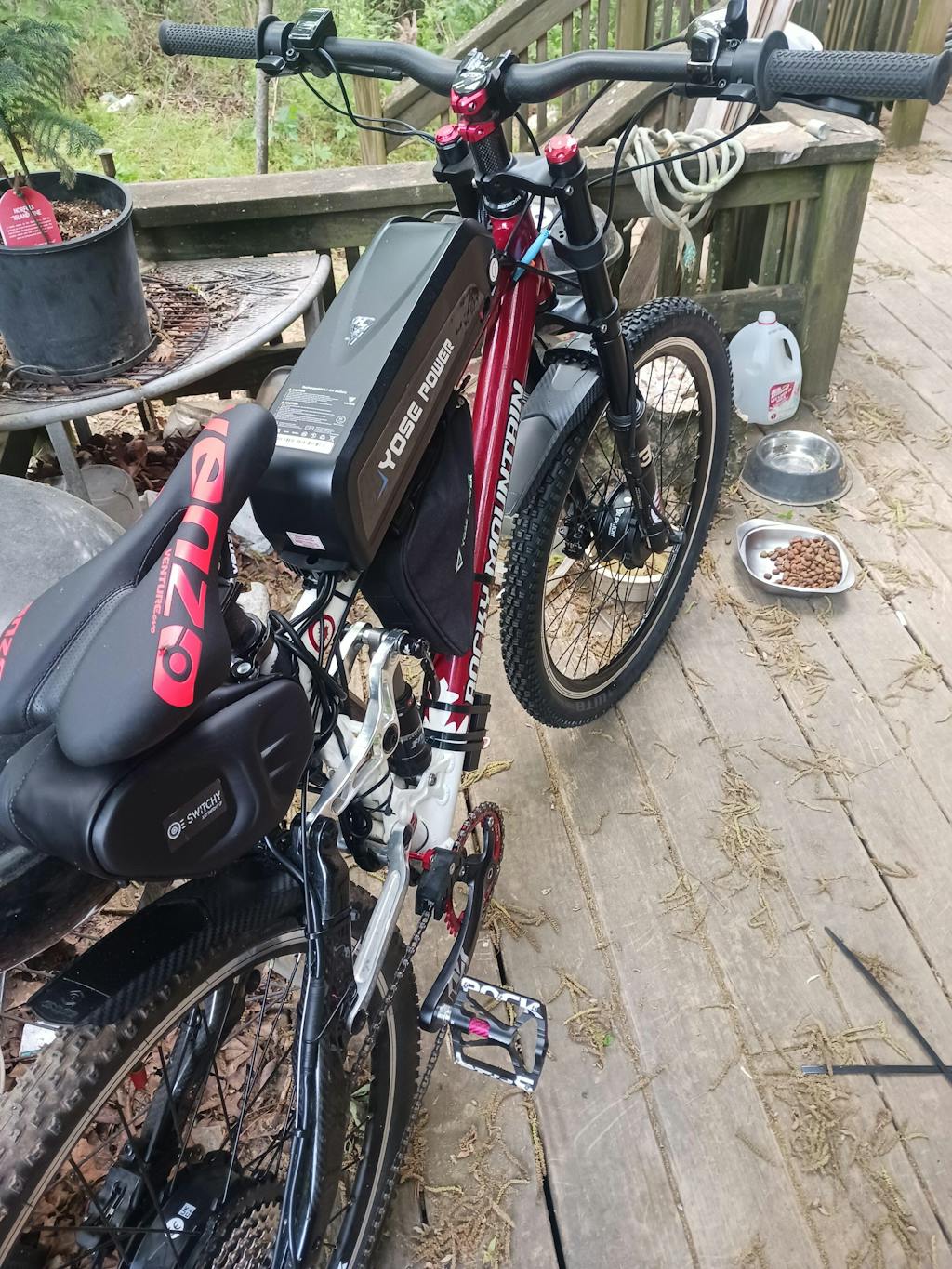 I was a bit worried that it would struggle with the additional weight and drag of my trike, but it has preformed excellently thus far. It can’t travel as fast or as far as it would with a bike (Ive been able to max out the speed at ~16 mph) but that’s to be expected (you shouldn’t be traveling that fast on a trike anyway).
