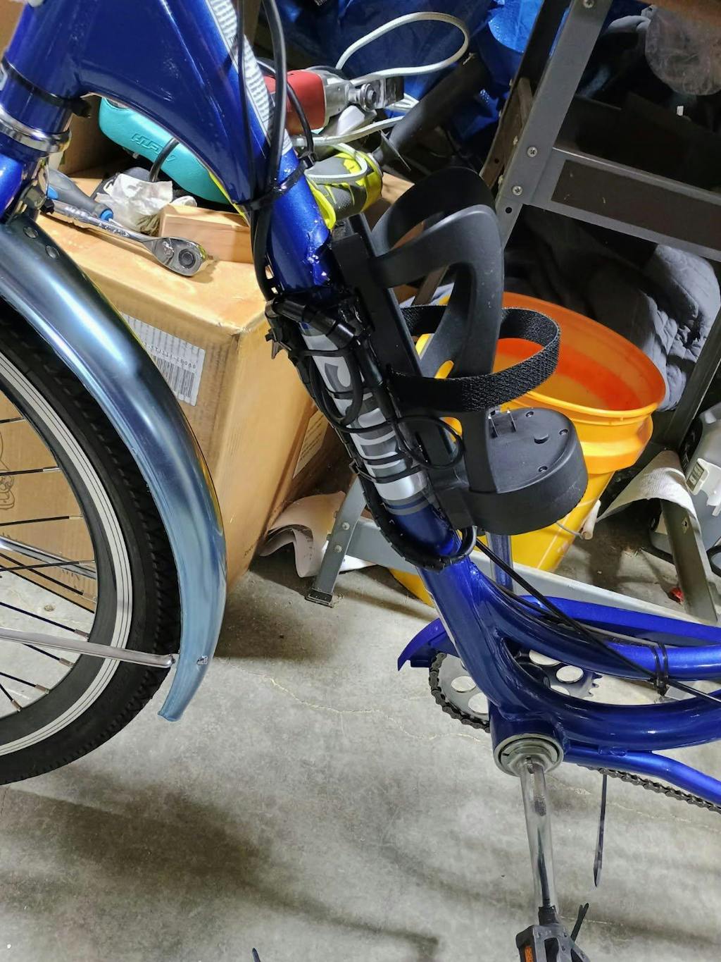 The water bottle battery is genius. It’s easy to bring into the house to charge at night and just the right size to strap onto a backpack to stop it from getting stolen. It’s convenient to mount too, although since my trike doesn’t have holes to mount a water bottle cage, it is a bit less stable than I’d like and has on occasion slipped in the way of my pedals (although that is mostly a problem with my mounting rather than the kit’s design, that said, it would be nice if it came with a sturdier mounting method for bikes/trikes that don’t have studs).