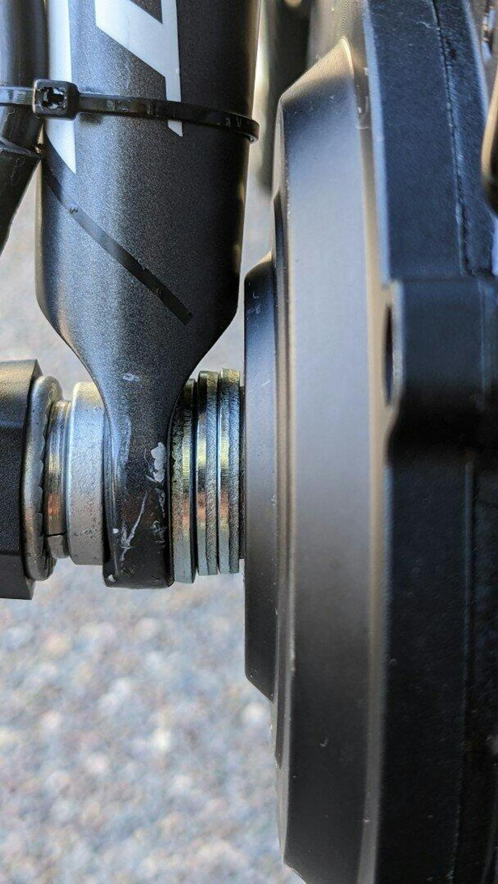 2. You may have to install the locking washer between the fork and wheel to provide the extra space I needed in my case... And yes, E-Switchy signed off on that!